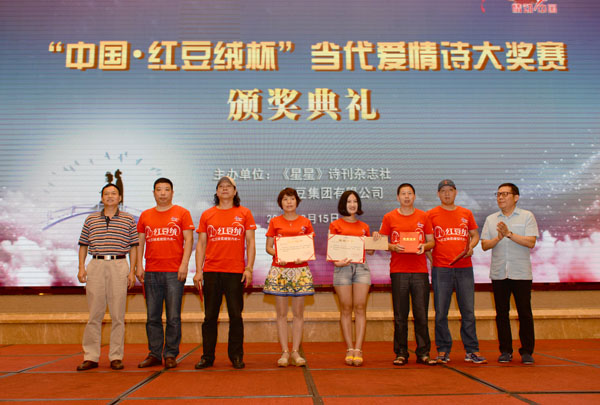 8月15日,備受關(guān)注的“中國(guó)?紅豆絨杯”當(dāng)代愛(ài)情詩(shī)大獎(jiǎng)賽各項(xiàng)獎(jiǎng)在無(wú)錫紅豆杉莊正式揭曉,來(lái)自湖南長(zhǎng)沙的宋志剛以組詩(shī)《紅豆,那顆磅礴的心跳》在4.62萬(wàn)首投稿詩(shī)作中脫穎而出,獲得特等獎(jiǎng)。