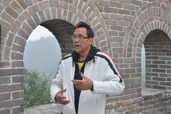 花藝堅持跑完3公里長城體能訓練