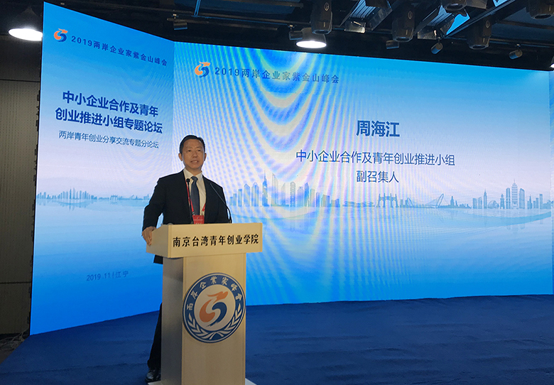 11月4-5日,2019兩岸企業(yè)家紫金山峰會在江蘇南京舉行。中共中央政治局常委、全國政協(xié)主席汪洋出席并發(fā)表演講。作為兩岸企業(yè)家峰會中小企業(yè)合作和青年創(chuàng)業(yè)推進(jìn)小組召集人的紅豆集團(tuán)董事局主席兼CEO周海江,在兩岸青年創(chuàng)業(yè)分享交流專題論壇上,鼓勵臺灣青年精英來大陸創(chuàng)業(yè),并分享了自己創(chuàng)業(yè)的故事。