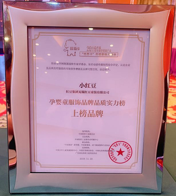 由中國紡織工業聯合會和中國紡織工業聯合會傳媒中心指導主辦的,2019年度中國孕嬰童產業“娃斯卡”傳媒影響力榜單發布盛典暨中國孕嬰童產業發展高峰論壇,于2019年11月22日在廣東虎門正式開啟。紅豆集團旗下的連鎖品牌“小紅豆”童裝憑借“舒適”的產品理念和“優質平價”的品牌定位,入選2019年度中國孕嬰童產業“娃斯卡”傳媒影響力榜單——孕嬰童服飾品牌品質實力榜。活動現場邀請了包括“小紅豆”童裝在內的近百家參評企業代表領獎并參與互動。這是繼2015年首屆中國孕嬰童產業發展高峰論壇成功舉辦以來的第四屆盛典。