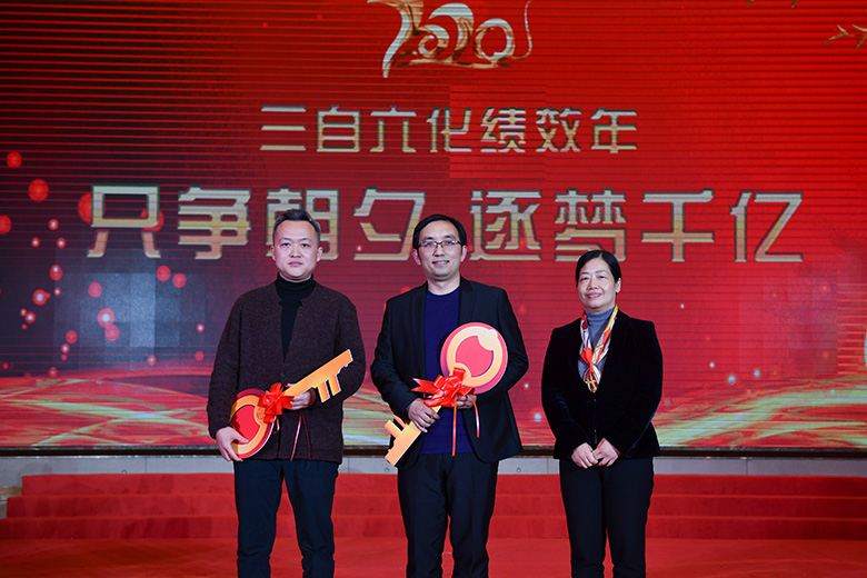 千億紅豆,人才先行。自“百才工程”設立以來,紅豆集團已累計引進數百名高級人才,在集團各領域發揮他們的優勢。匯報會上,集團頒發了“做大規模貢獻獎”、高級人才“安家補貼”以及“三級企業年度冠軍”3項人才大獎,鼓勵紅豆員工為集團發展貢獻更大力量。