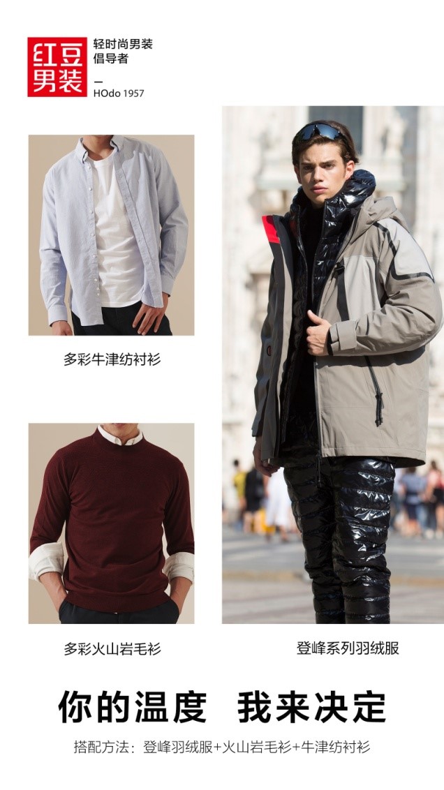 “旅行過新年”已經成為如今春節過年的熱門形式,比起在家過春節的千篇一律,很多人更愿意在旅行中享受別樣年味兒,大自然的無限風光掃去一年的疲憊與壓力,假期就是要好好享受生活。紅豆登峰鵝絨服精選精致鵝絨,加上暖絨發熱布袋,就算旅行途中再寒冷,也不用穿著臃腫,內搭多彩牛津紡襯衫和火山巖毛衫,明快色彩的組合打造出簡約自然的風格。旅行中的溫度與風度,紅豆男裝都能為你守護。