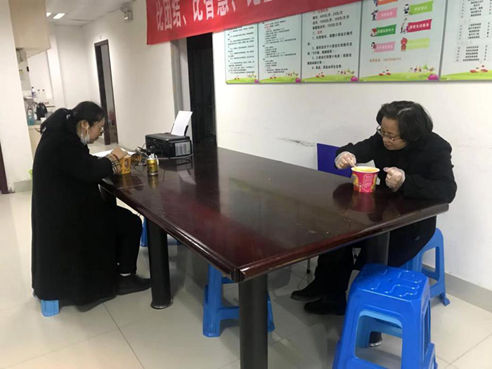 而在場的9名紅豆物業(yè)工作人員,都有些蒙,19天的抗疫工作以來,還是首次遇到這種情況,現(xiàn)在情況未明大家該怎么辦?是否也要“自我隔離”?這時(shí)已有14年黨齡的紅豆萬花城物業(yè)張麗萍經(jīng)理鎮(zhèn)定下來,她讓大家冷靜,并立即咨詢醫(yī)院,得知兩小時(shí)后會(huì)出初步結(jié)果,就讓大家集中在一個(gè)辦公室,不要走動(dòng),手上工作盡可能用電話和信息的方式處理。
