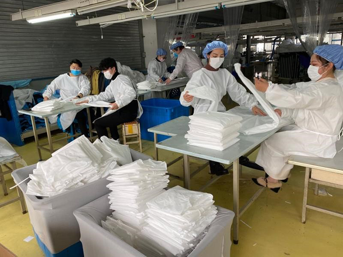 我們始終還想去追蹤采訪下,從紅豆戰(zhàn)“疫”打響一開(kāi)始,就在決策和生產(chǎn)一線沖鋒陷陣的集團(tuán)常務(wù)副總裁,國(guó)際公司董事長(zhǎng)戴敏君。她總會(huì)把我們帶到其他幾位,同樣沖在一線的高品亞,鮑敏,戴柯柯,周剛,顏軍等他們身邊,向我們一一講述他(她)們的一個(gè)個(gè)生動(dòng)事例。