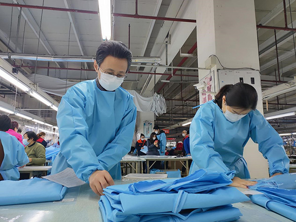 他所管理的車間,是西服生產(chǎn)流水線,一次性醫(yī)用隔離衣屬于針織產(chǎn)品,工藝不同、設(shè)備不同、人員技術(shù)不同,成為他要解決的首要問題。
