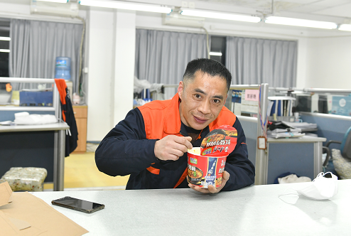 紅豆轉(zhuǎn)產(chǎn)防疫物資以來,吳曉東已記不清自己多少次凌晨回家,從春節(jié)假期返廠至今,一直堅(jiān)守崗位已經(jīng)連續(xù)吃了一個多月的方便面,被同事們稱為“方便面”科長。