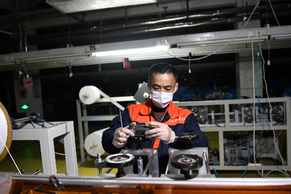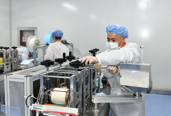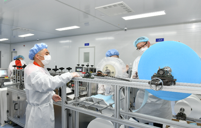 他說,剛開始心里也沒底,畢竟沒有搞過,在和小伙伴們一起研究、反復(fù)摸索后總算有了門道。吳曉東介紹,在半自動生產(chǎn)過程中,口罩面罩的生產(chǎn)由機(jī)器完成,再由人工熔接耳帶;全自動生產(chǎn)過程中,無紡布、熔噴布、鼻梁架、耳帶線等原材料只需放在對應(yīng)位置上即可,不再需要其他工序。在這些過程中,機(jī)器的精確程度都影響著次品率。長途運(yùn)輸、稍有不慎,一個螺絲的松動、一個刀口的裂紋都會影響口罩面罩的切縫、鼻梁架的位置偏移,而調(diào)試工作就是讓這些機(jī)器盡可能嚴(yán)絲合縫,從而發(fā)揮最大效能。同樣面對陌生的設(shè)備,吳曉東憑借自身學(xué)習(xí)經(jīng)驗(yàn)和對機(jī)械的興趣與鉆研,不斷與新設(shè)備磨合,在一次次糾正和摸索中,屢屢找出最佳解決方案。口罩全自動生產(chǎn)過程中,一條生產(chǎn)線出現(xiàn)了切不斷面罩的問題,吳曉東第一時間趕到現(xiàn)場,認(rèn)真校準(zhǔn)、仔細(xì)判斷,直到發(fā)現(xiàn)問題出在一片刀片上,只需替換即可。診斷設(shè)備的吳曉東看著沉著冷靜,其實(shí)心里也沒底,全憑經(jīng)驗(yàn)摸黑前行,他坦言,最擔(dān)心生產(chǎn)前后道跟不上,不能保證產(chǎn)能,只能一點(diǎn)一點(diǎn)試、一點(diǎn)一點(diǎn)調(diào),和時間賽跑,直到合格的面罩一片片從出口快速飛出、全部設(shè)備滿負(fù)荷生產(chǎn)。從剛開始的親自安裝調(diào)試,到后來指導(dǎo)技術(shù)人員安裝調(diào)試口罩生產(chǎn)線,吳曉東獲得了車間管理人員和工人的一致贊譽(yù),成為技術(shù)大師傅。