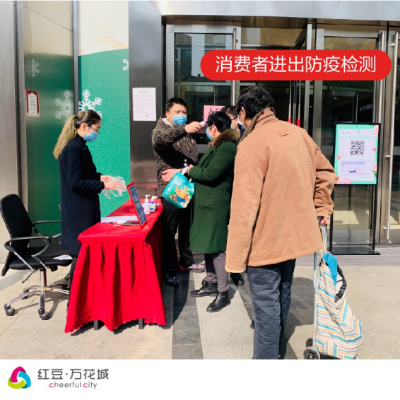 隨著復工復產后人員的密集性流動,為了更好的開展防疫與經營兩手抓,紅豆萬花城一方面,絕不松懈場內的每日定時消毒衛生工作,并要求各部門每日對員工、商戶、顧客進行體溫檢測,掃描進出人員“錫康碼”并做好人員流動登記,切斷外部傳播途徑,控制疫情的傳播和蔓延,為顧客做好安心的后勤保障工作,為商戶復工創造安全健康的經營環境。