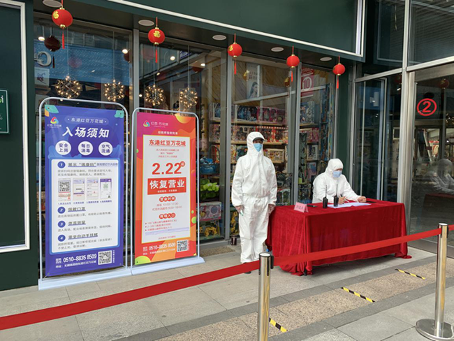閉店期間,各項目積極做好防疫保障,儲備防疫物資,在得知可申請回復營業后第一時間提交申請,經政府驗收批準,2月22日東港紅豆萬花城成為錫山區首家恢復營業的購物中心,全力保障百姓的生產生活需求,與此同時,中山路紅豆萬花城、人民路紅豆萬花城、鎮江紅豆萬花城等項目也逐步通過驗收,恢復營業。