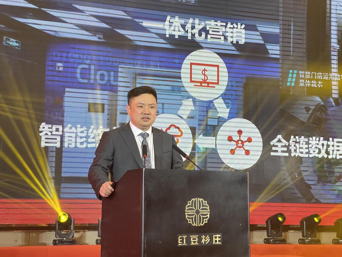 ? ? ? ? 紅豆股份總經理王昌輝發表致辭,分享了紅豆股份未來發展規劃。紅豆股份立足“三十而立 穿紅豆男裝”的品牌定位,將借助智慧紅豆的強大動能,建立基于數據、商品、渠道三位一體的核心優勢,占位舒適男裝國民品牌,以“新定位,新形象,新產品”來實現整體進化增效。