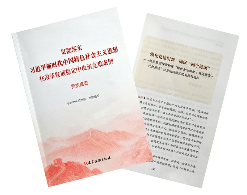據(jù)新華社北京7月22日報道,中央組織部組織編選的“貫徹落實習近平新時代中國特色社會主義思想、在改革發(fā)展穩(wěn)定中攻堅克難案例”叢書,近日由黨建讀物出版社出版發(fā)行。紅豆集團的黨建工作經(jīng)驗光榮入選其中的《黨的建設》本,該書共選30個單位的案例,紅豆集團是唯一的民營企業(yè)。