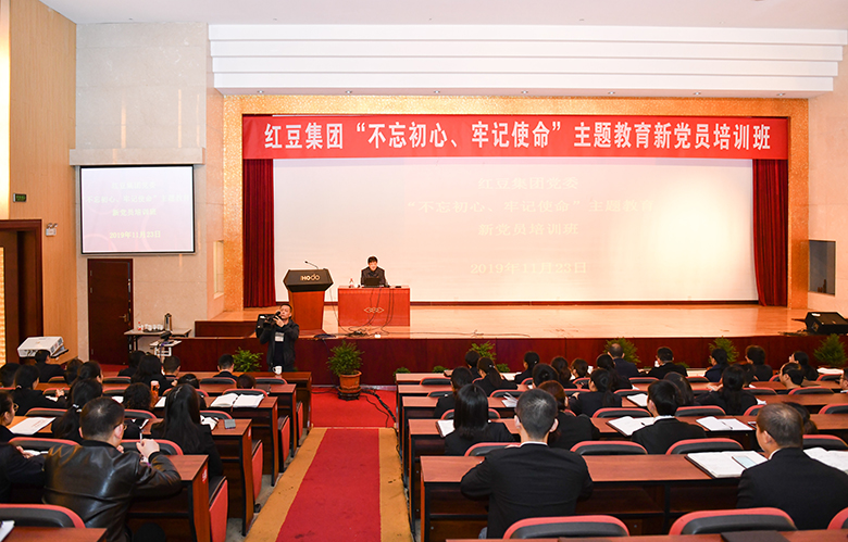 為進一步推動“不忘初心、牢記使命”主題教育工作深入開展,進一步激發(fā)、增強黨員榮譽感和使命感,11月23日上午,紅豆集團黨委在展史館報告廳組織了“不忘初心、牢記使命”主題教育新黨員培訓(xùn)班,參加培訓(xùn)的有集團近幾年新發(fā)展和新轉(zhuǎn)入的黨員,集團總部部長、二三級黨組織組織委員列席參加,駐外公司新黨員通過視頻連線的方式參與聽課。此次培訓(xùn)班,紅豆集團邀請到無錫市二級巡視員、市委組織部原副部長為大家上了一堂“不忘初心、牢記使命,做新時代合格共產(chǎn)黨員”主題的生動黨課。