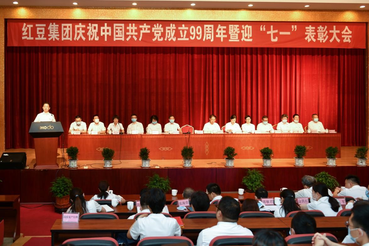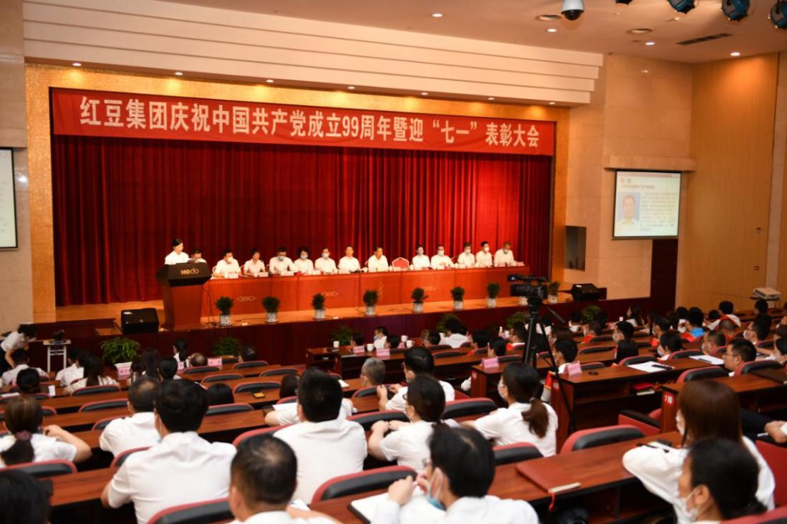 為慶祝中國共產黨99周年誕辰和表彰先進、樹立典型,激勵動員廣大員工堅定信念、開拓創新,為紅豆高質高效進化發展凝聚昂揚向上的精神力量,在黨的生日來臨之際,6月22日上午,紅豆集團慶祝中國共產黨成立99周年暨迎“七一”表彰大會在紅豆黨建館黨建大講堂隆重召開。大會表彰了紅豆運動裝公司高品亞、藥業公司丁正飛等22名“戰疫復產先鋒”;通用股份王少軍等13名“安全先鋒”;紅豆股份蔣曉晴、國際公司朱正偉等10名“規范先進個人”。紅豆集團黨委書記、董事局主席兼CEO周海江,集團黨委委員以及黨員干部代表等出席了會議。