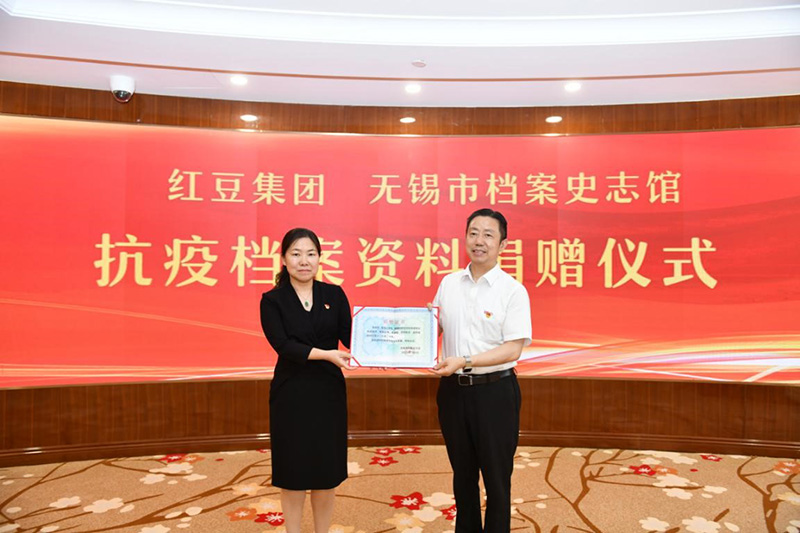 無錫市檔案史志館系統、深度、精準地挖掘開發檔案史志資源,不斷提升新形勢下檔案史志工作水平,服務發展大局、服務社會民生,為無錫經濟的高質量發展作出了積極貢獻。紅豆集團作為全國先進基層黨組織,在疫情防控期間,凝聚強大力量,積極支持一線抗疫,勇擔責任,為抗疫前線提供支持與保障。此次,雙方舉行檔案史料相互捐贈,既是對這場戰疫的永恒銘記,也是對這場人民抗疫戰爭的最好致敬。
