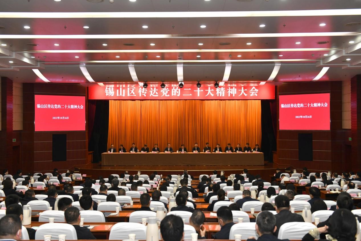 10月26日上午,錫山區召開傳達學習貫徹黨的二十大精神大會。區委書記方力主持并講話。區委副書記、區長顧文浩,區人大常委會主任章紅新,區政協主席言國強等區四套班子領導出席會議。黨的二十大代表,紅豆集團黨委書記、董事局主席周海江應邀參會,向錫山區黨員干部傳達黨的二十大精神,分享參會感想和體會。