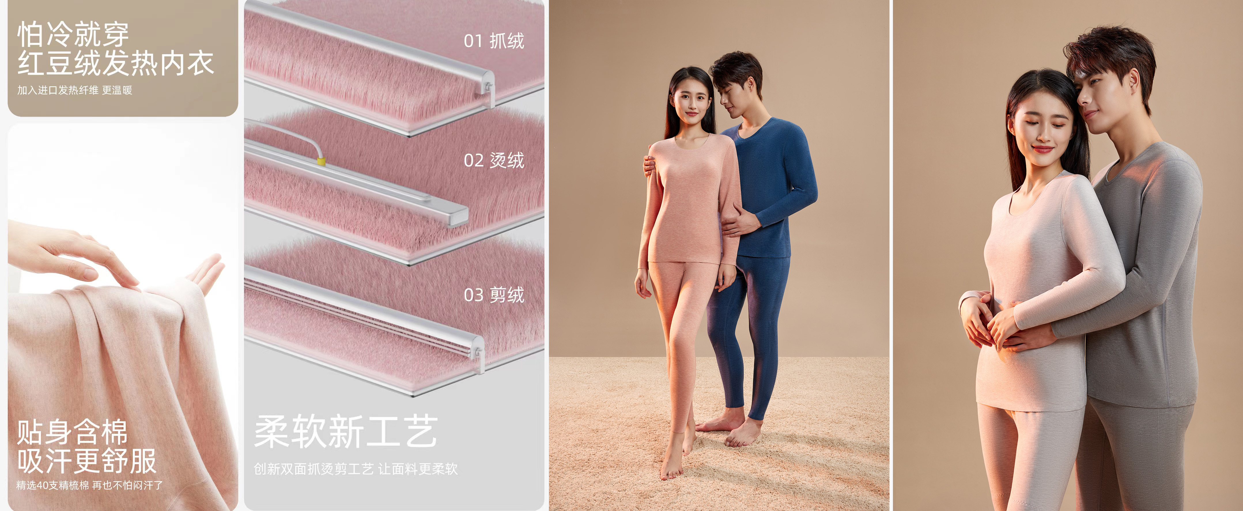 通過不斷研究內(nèi)衣科學,“紅豆絨柔軟型內(nèi)衣”全國熱銷超1.7億件,“嬰兒綿柔軟型文胸”成為千萬女性舒適之選,“紅豆紅內(nèi)衣系列”也成為消費者節(jié)慶必購產(chǎn)品。